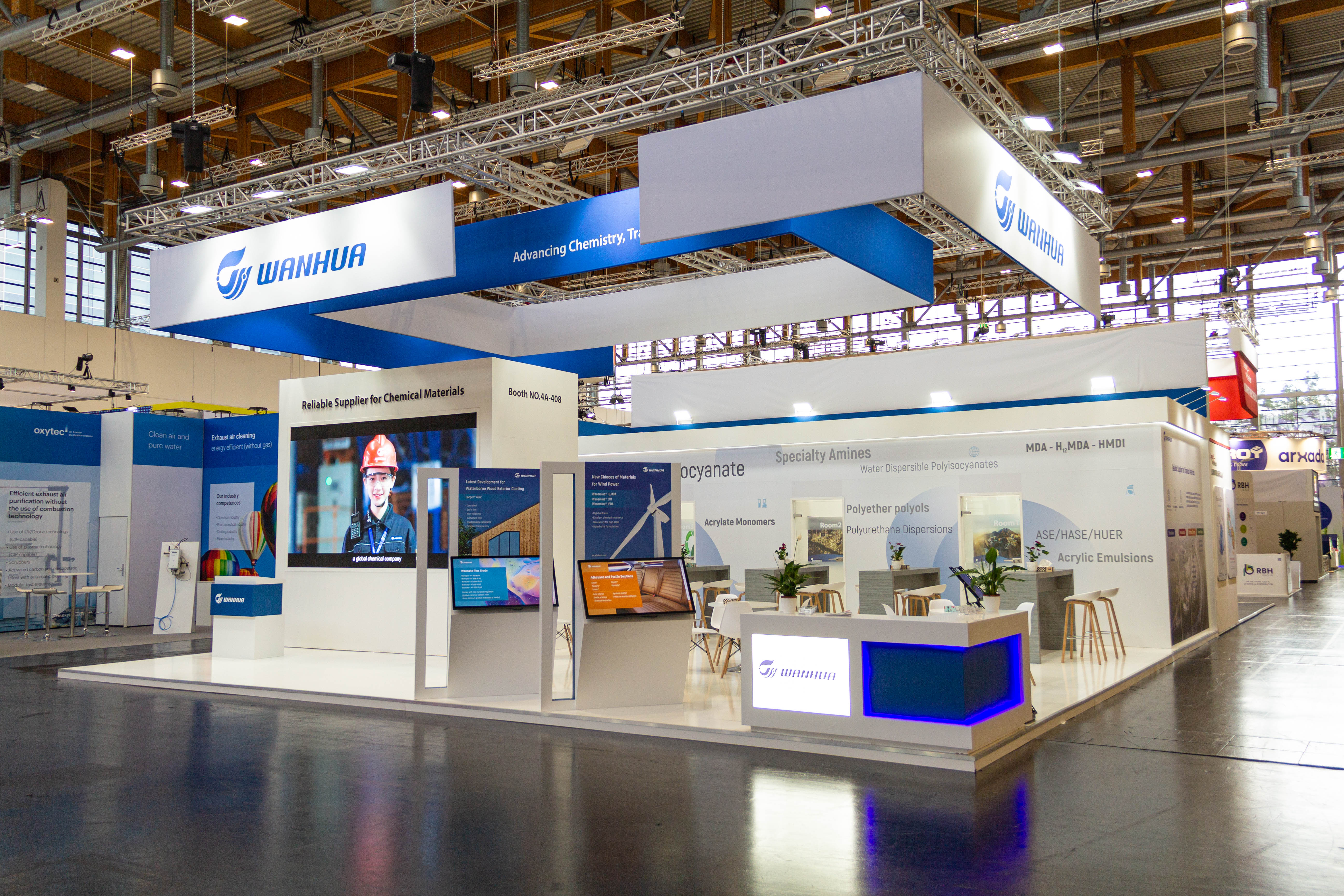 Wanhua Chemical showcased a range of innovative solutions at the European Coatings Show (ECS 2023) in Nuremberg, Germany, from March 28 to 30, 2023. The company offered customized services and products in various industries, such as food packaging, cosmetics and personal care, household goods, automobile and more.