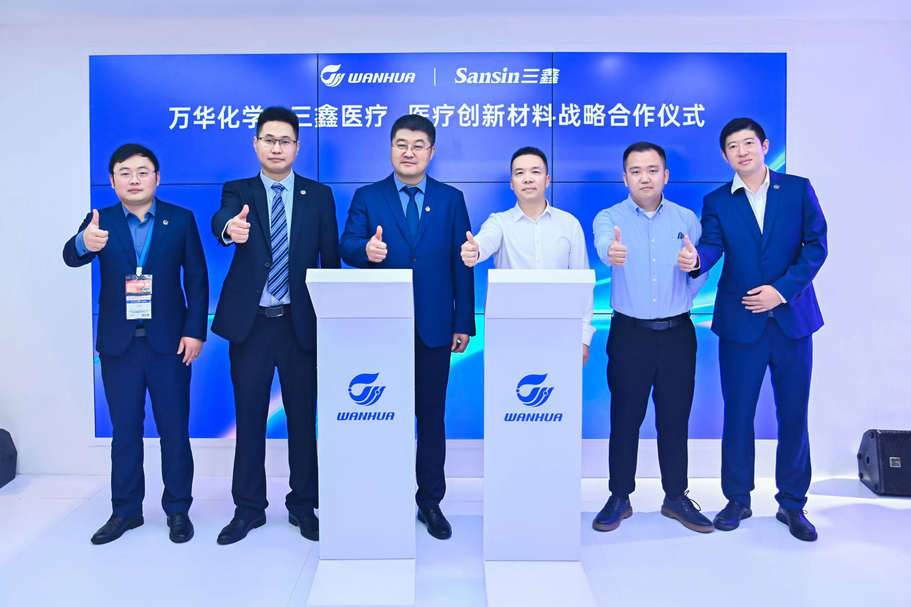 On April 18, Wanhua Chemical, together with Baihe Medical, Ocl Medical and Sanxin Medical, held a strategic cooperation ceremony at Chinaplas aimed to build a integrated and resilient medical alliance. We have been exploring the applications of innovative materials in medical field, realizing technical delivery with our advantage of R&D platforms, which covers a wide range of medical applications with customized needs.