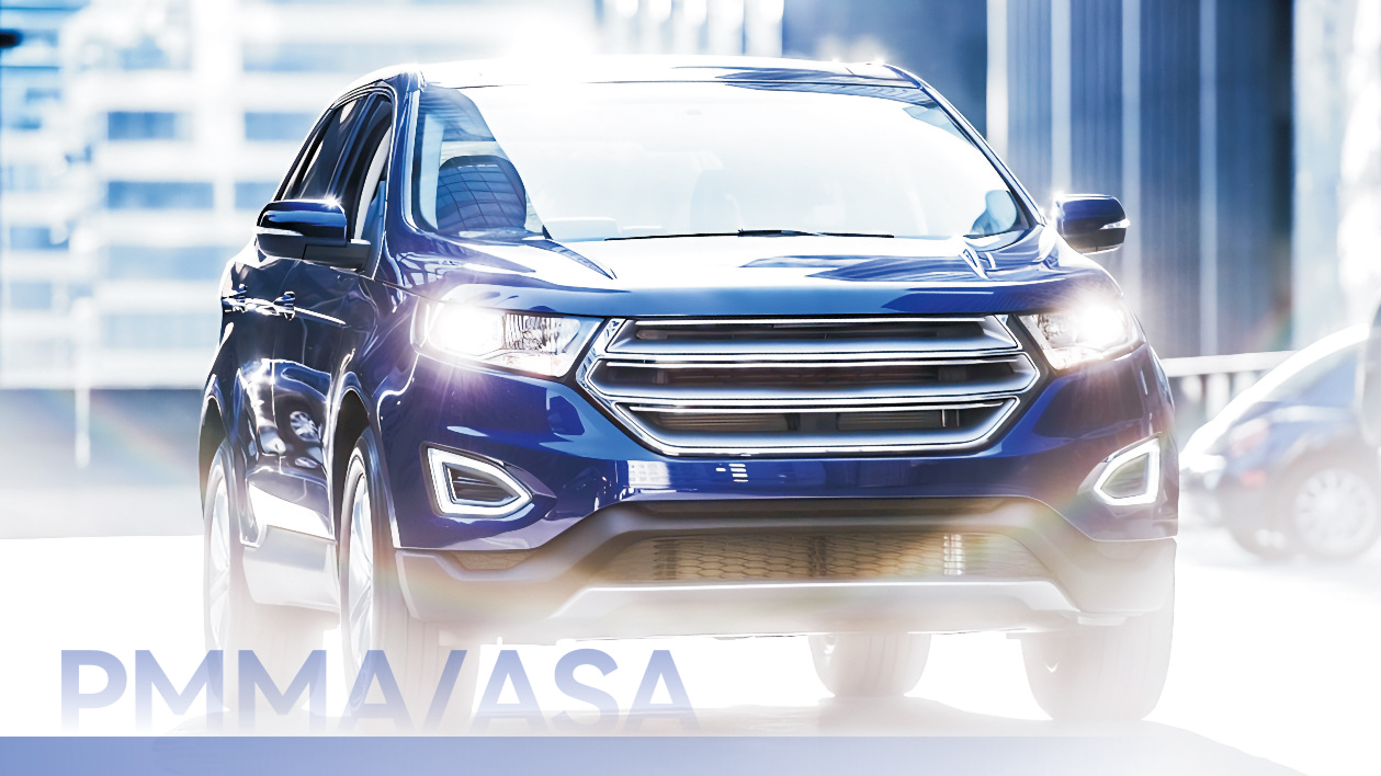 In conventional methods, automotive parts such as exterior pillars, mirror housings, spoilers, and grilles are typically painted using materials like ABS, ASA plus PP, or PC/ABS, which involves high costs and environmental pollution. The PMMA/ASA alloy, as a paint-free alternative, addresses these issues by significantly reducing production costs and environmental impact, thereby supporting the sustainable development of the automotive manufacturing industry.