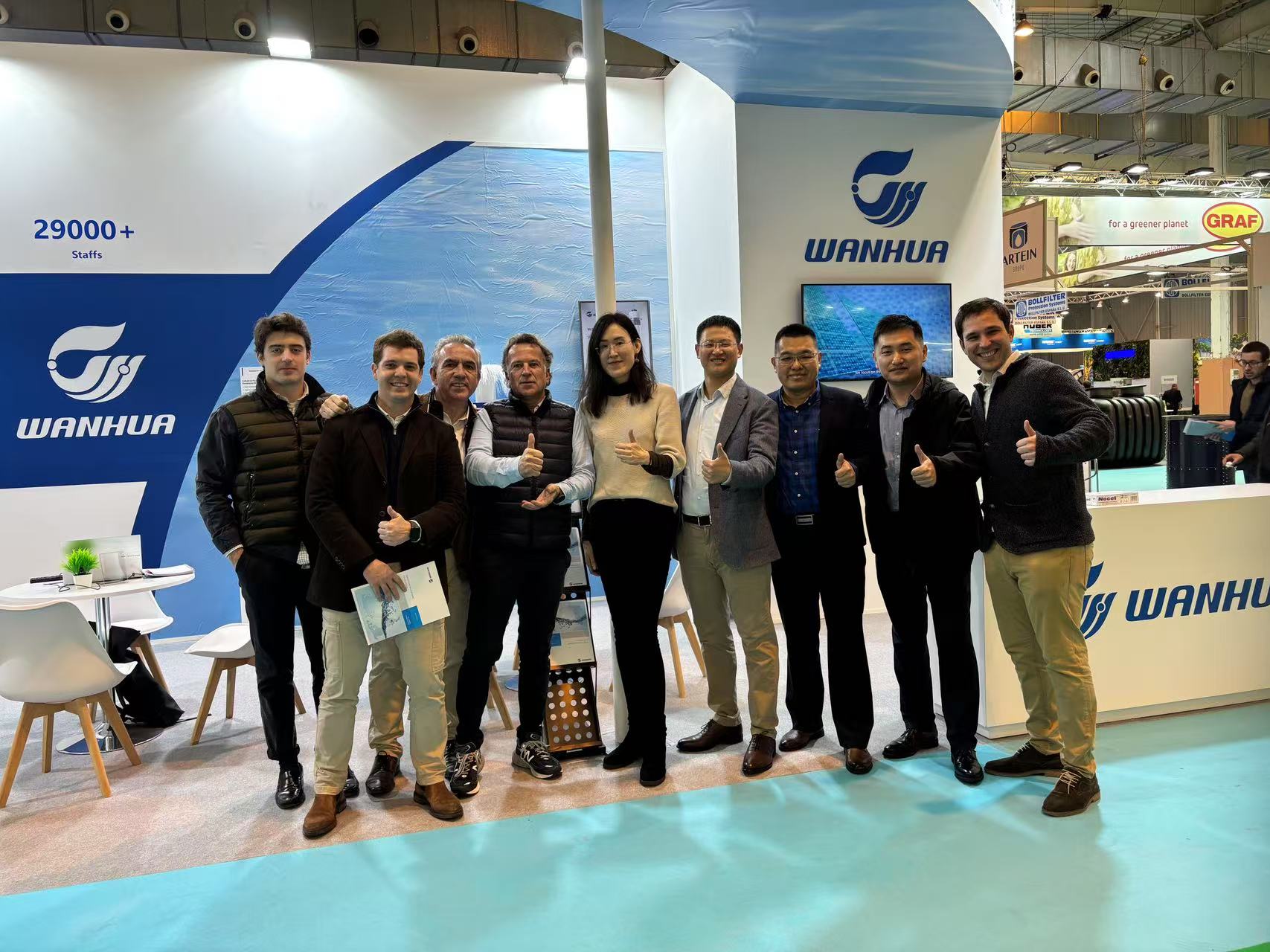From March 4 to 6, 2025, Wanhua Chemical made its debut at Smagua, a global water treatment industry event held in Zaragoza, Spain, showcasing its self-developed hollow fiber ultrafiltration membranes, industrial reverse osmosis membranes, seawater desalination membranes, and other membrane material products.